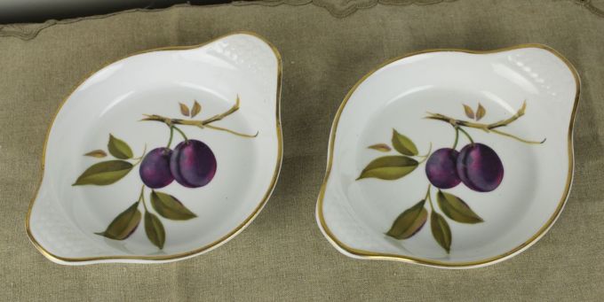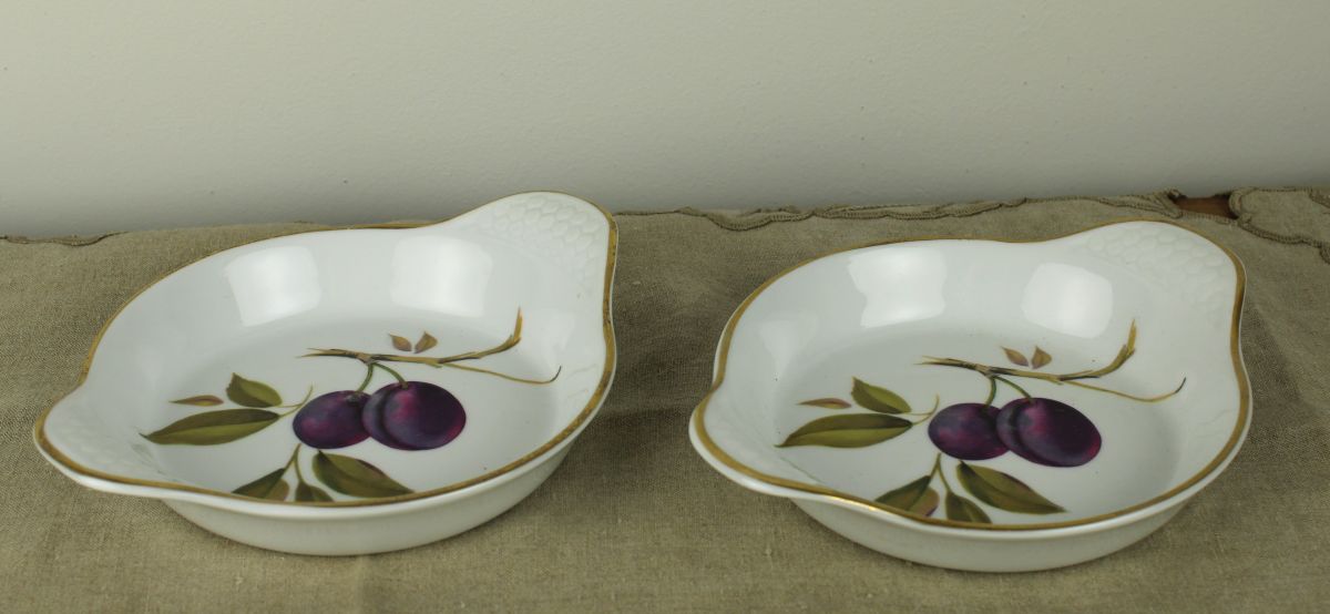 Set van twee ovenschaaltjes.Royal Worchester Evesham oven to table ware. Superleuk voor een crumble of ander dessert wat in de oven moet. Diameter zonder oren 14 cm. De prijs is voor de set van 2 stuks.
