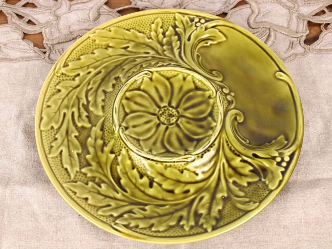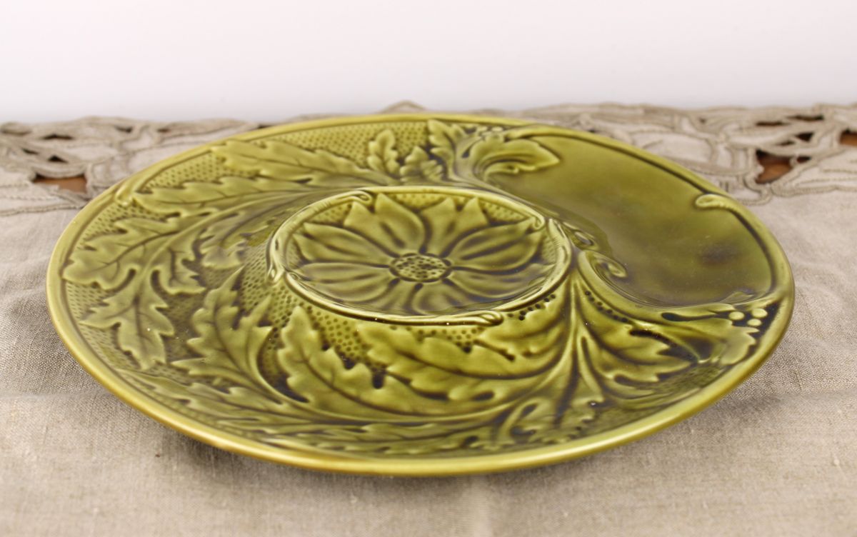 Prachtig bord van Gien voor crudité. Rauwe groente met een dipje / vinaigrette. Ook leuk voor een antipasta of ander voorgerechtje met dip.In het gladde vakje ligt dan de dip. Supermooi en zeldzaam. Te dateren tussen 1974 - 1981. In goede staat.Diameter: 23,5 cm.