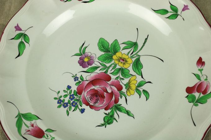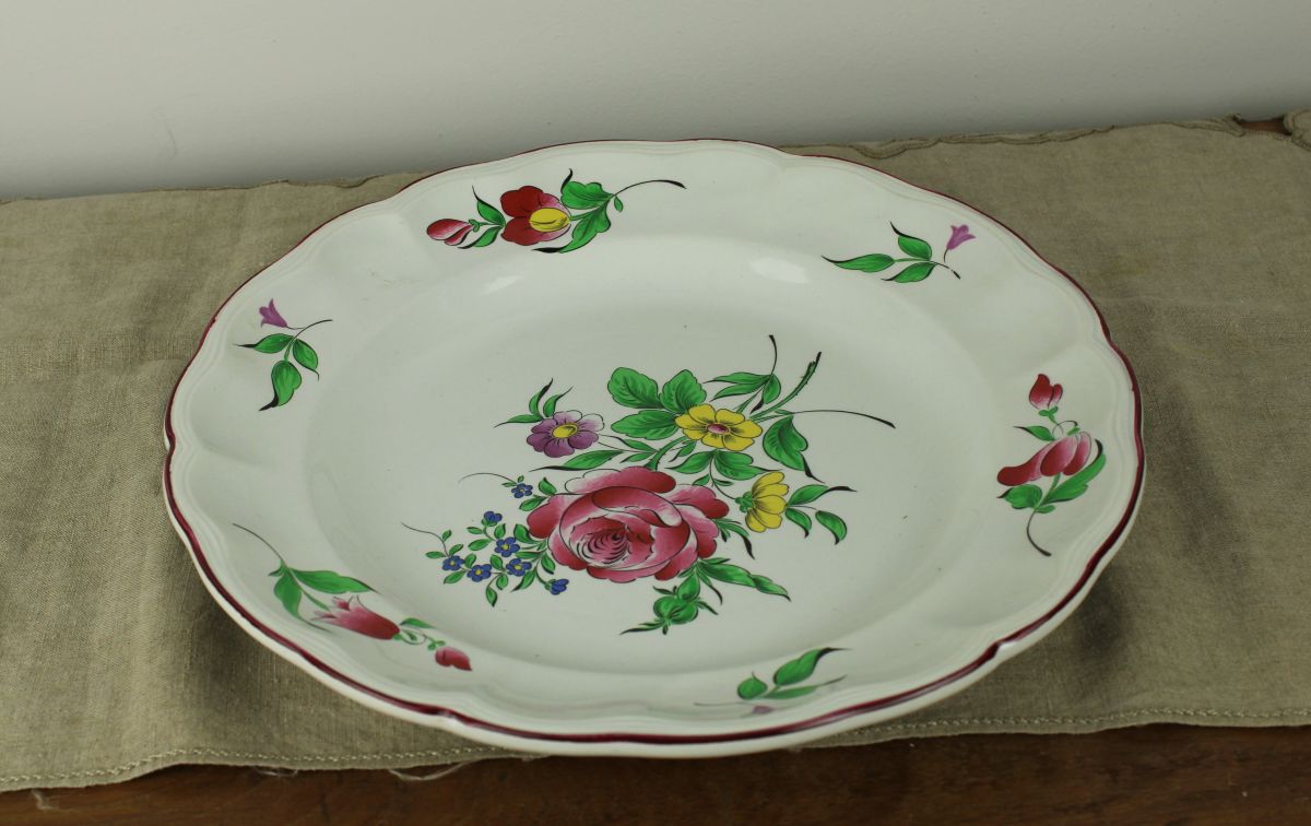 Prachtig gaaf bord van Luneville France. Met decor van bloemen. Old Strasbourg. 1880-1922. Om op te hangen zo mooi! Diameter: 30 cm.
