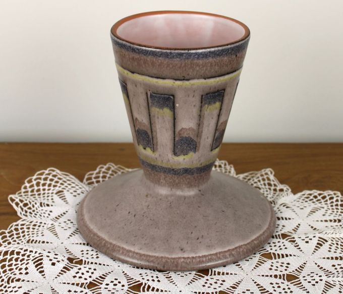 Twee in één, deze keramieken vaas en als je hem omdraait kun je hem gebruiken met een waxinelichtje. Mooie gedekte kleuren. Hoogte; ongeveer 14 cm. Diameter voet: 14 cm.