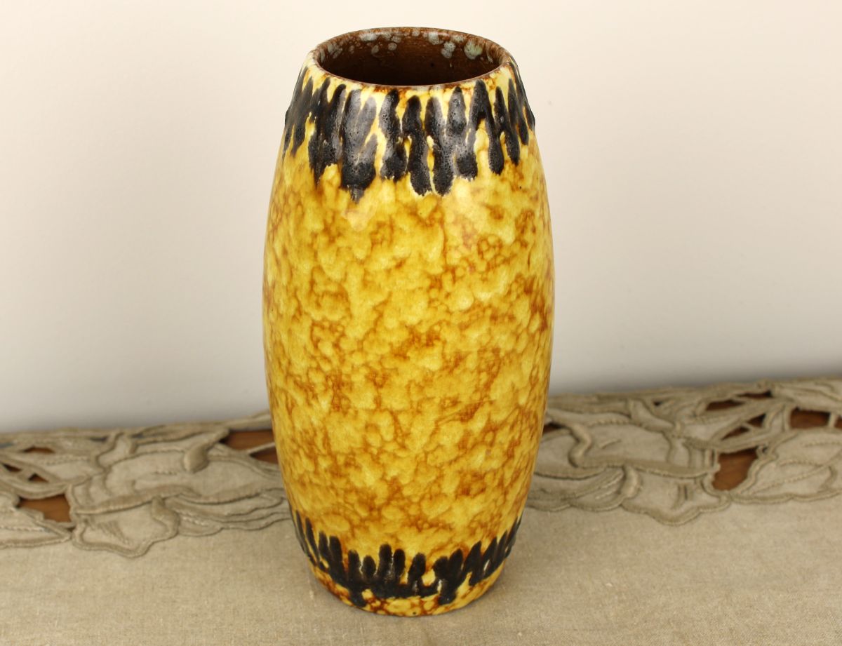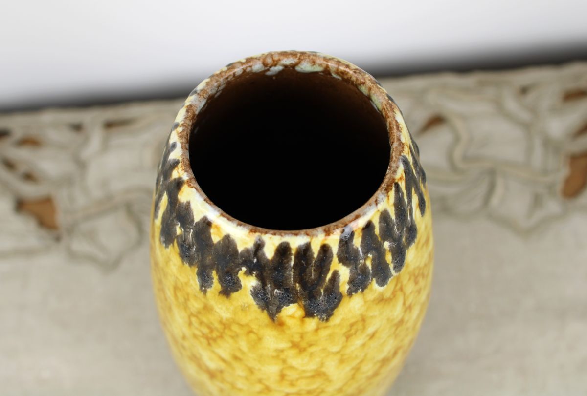 Mooie okergele vaas van Scheurich. West Germany. Goede staat. Hoogte: 20 cm.