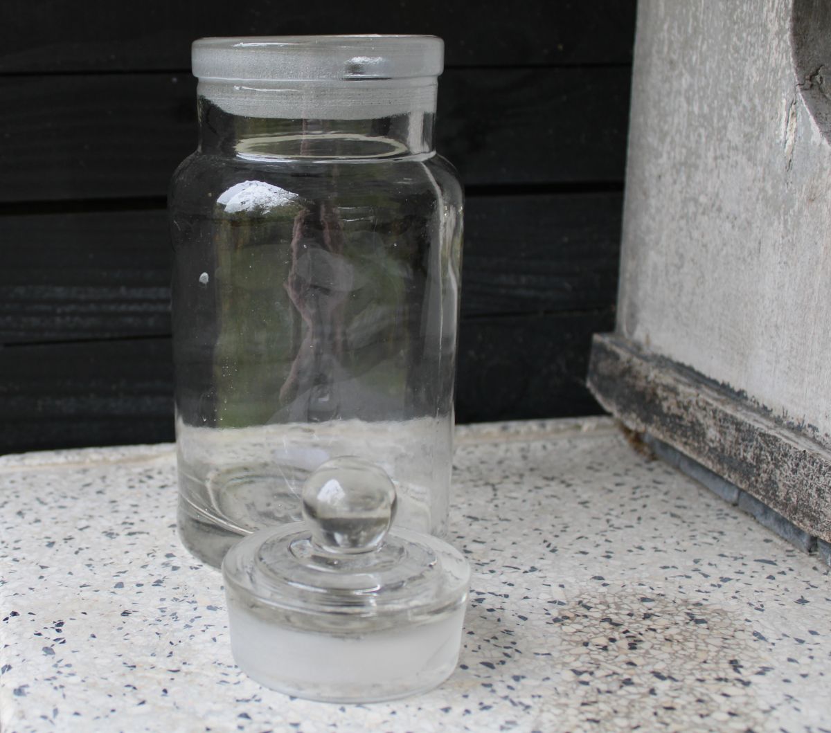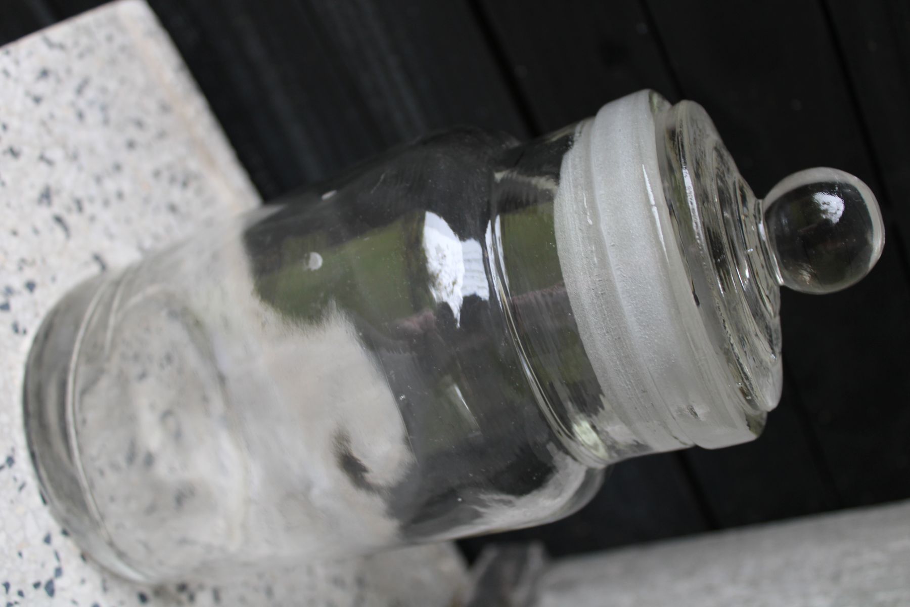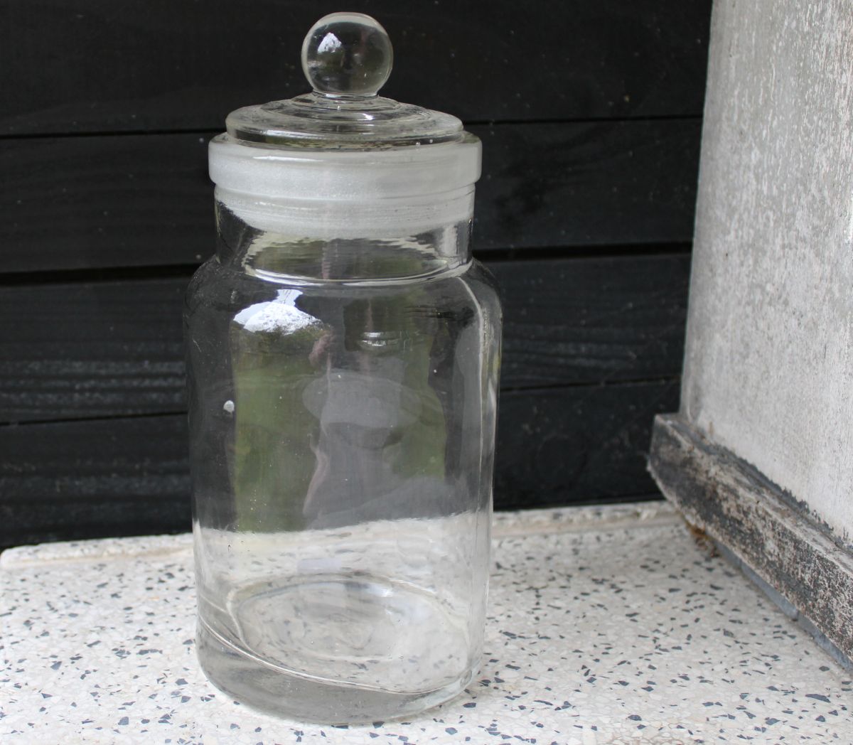 Voorraadpot glas met glazen stop. Oude snoeppot. 23 cm hoog met stop. Superleuk in je brocante keuken. Diameter bodem: 10 cm.