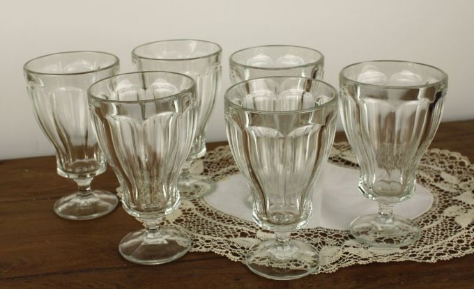 Superleuke ijscoupes voor een sorbet of ander toetje. Kan natuurlijk ook voor een voorgerecht. Hoogte: 15 cm. In goede staat. De prijs is voor de set van 6 stuks.